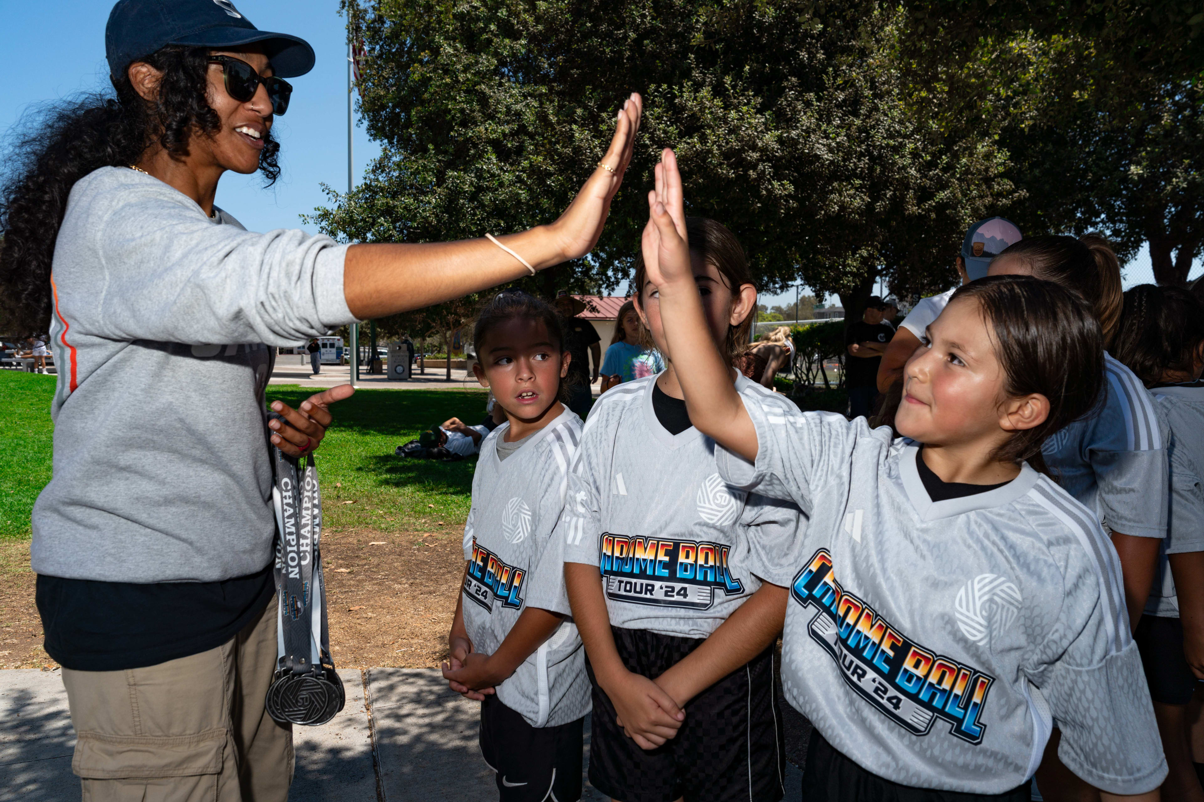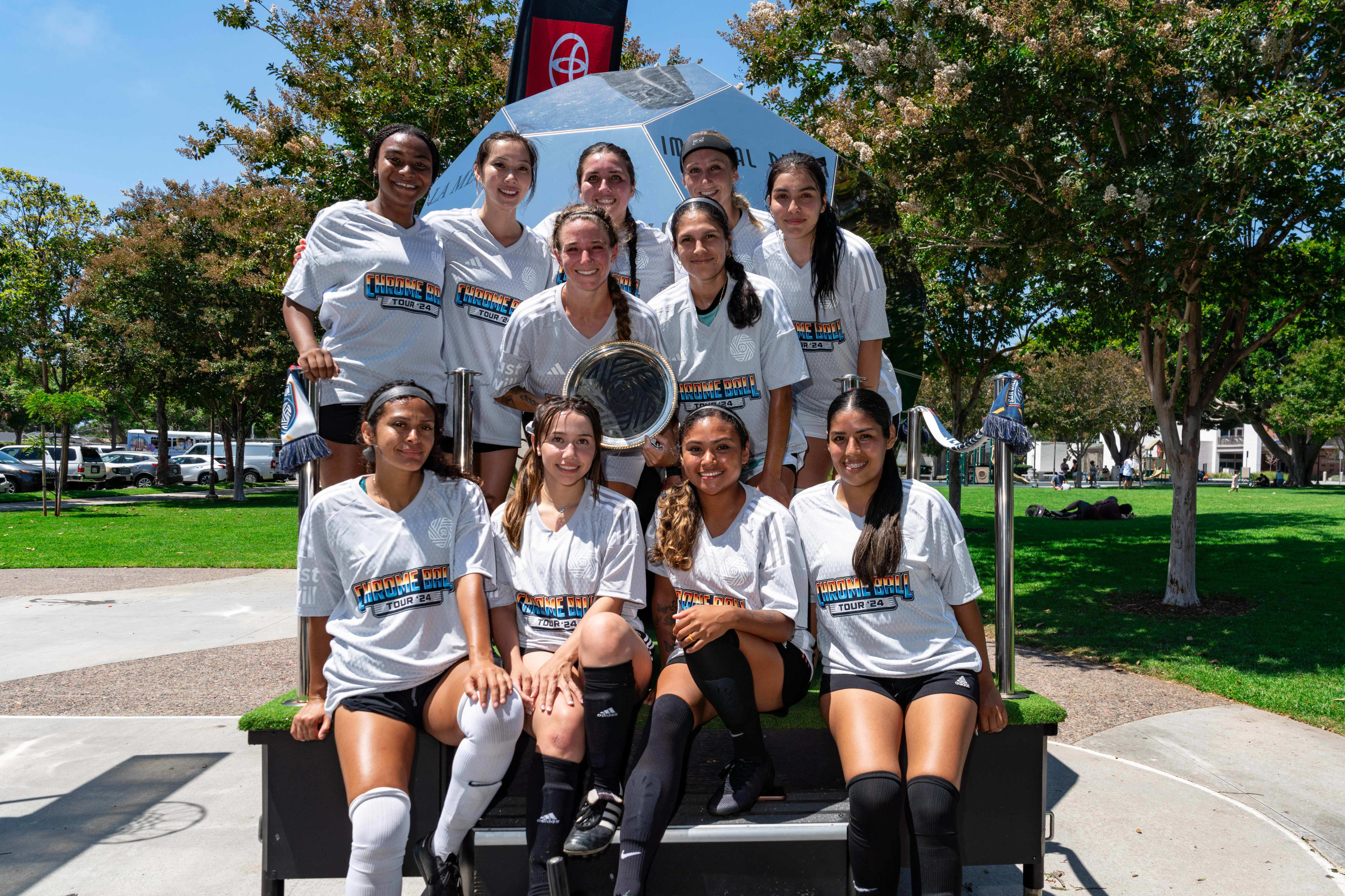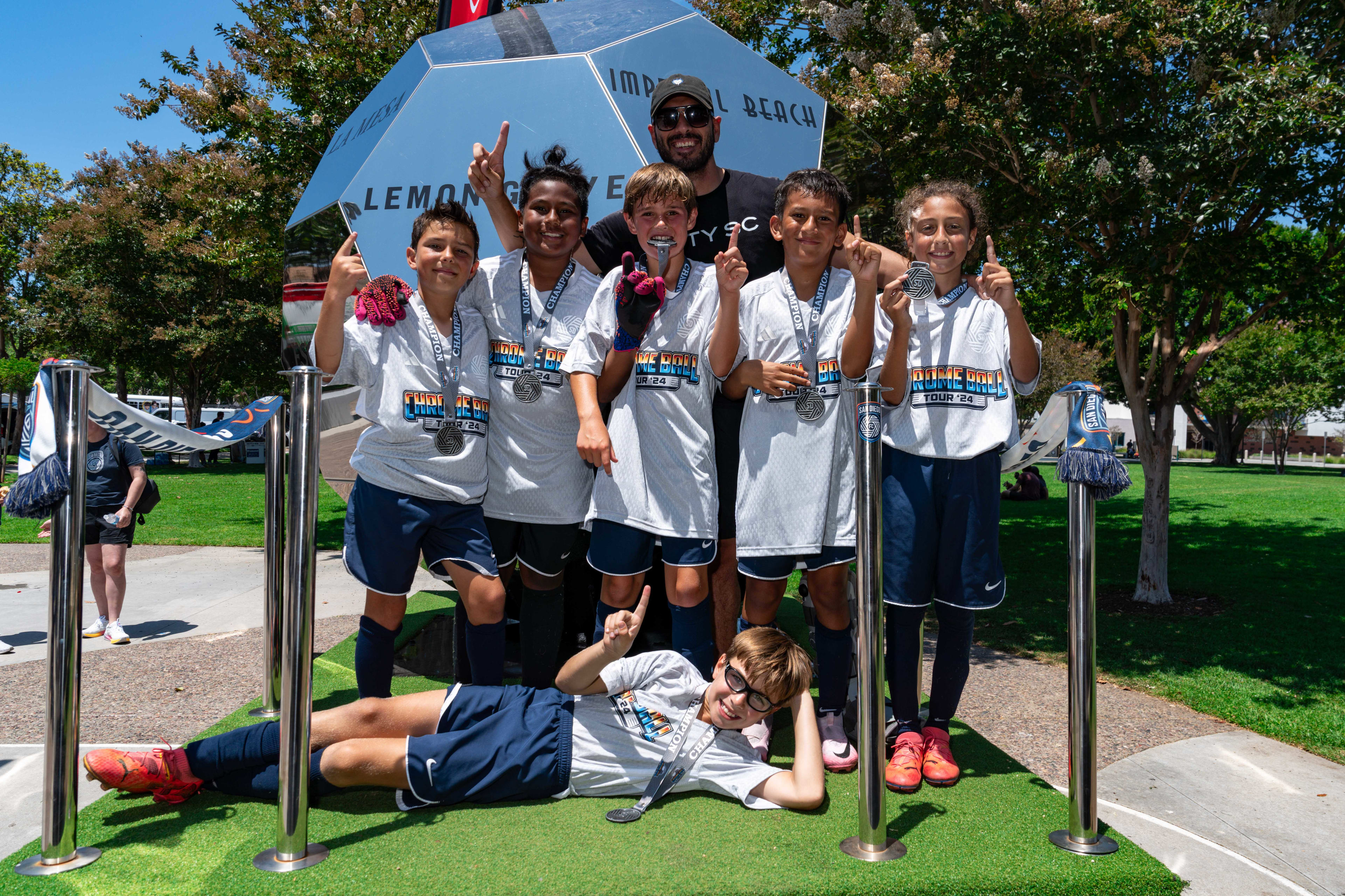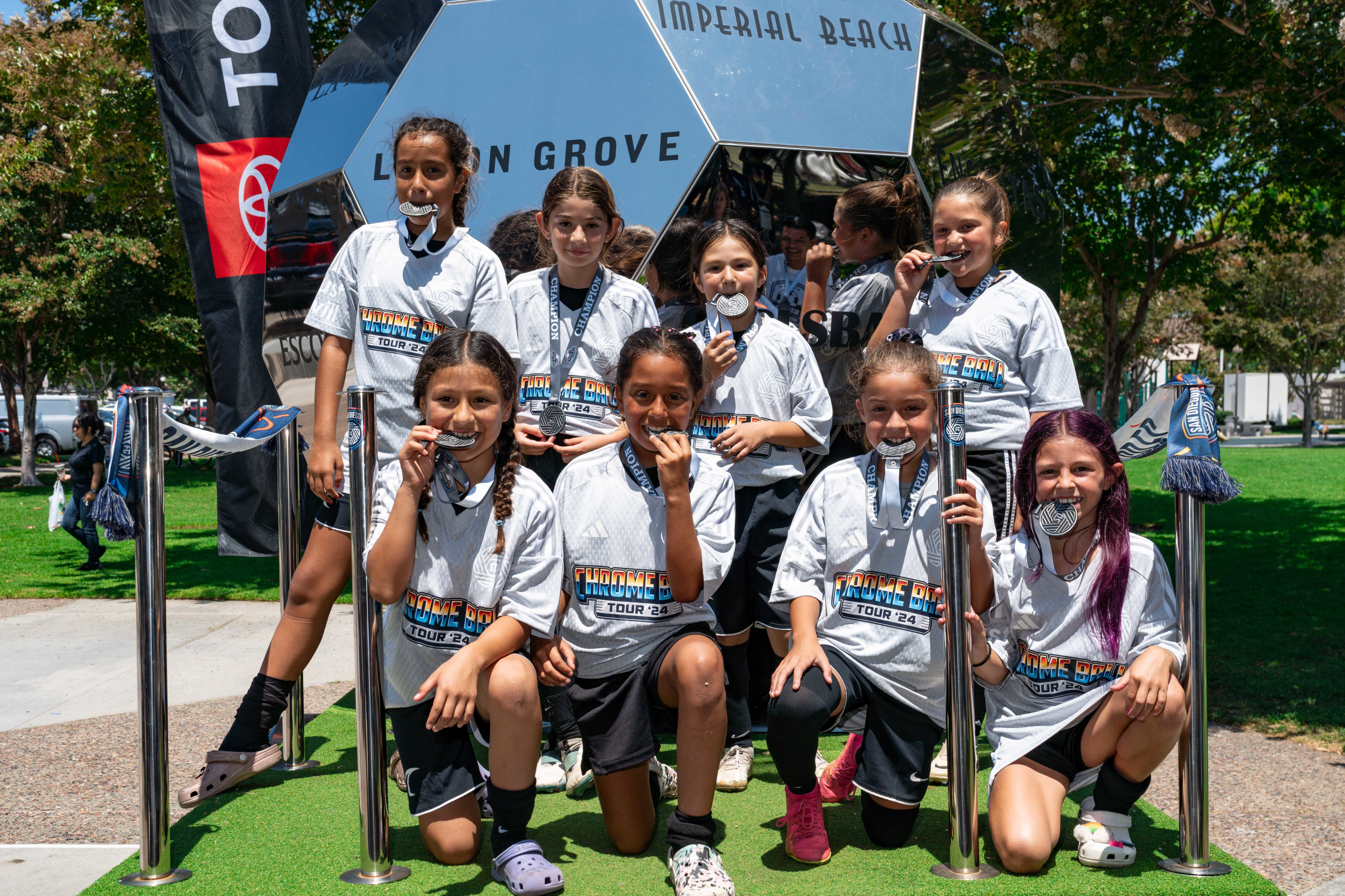San Diego FC's Chrome Ball Tour made its way to Carlsbad on Saturday, August 3, at Pine Park. This event was a celebration that featured 6v6 soccer tournaments with cash and merch prizes, the SDFC merch truck, soccer darts and other games, & more!