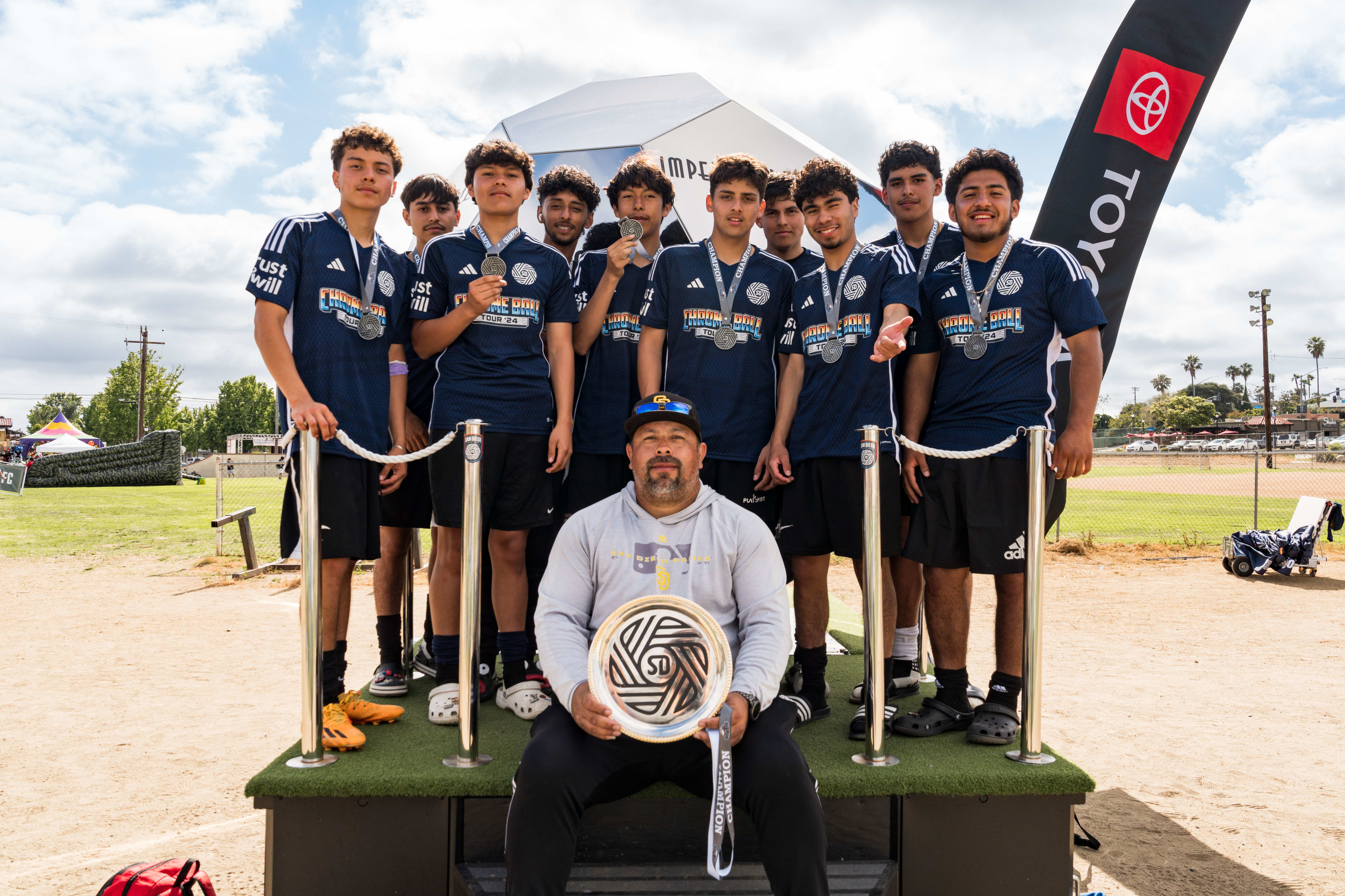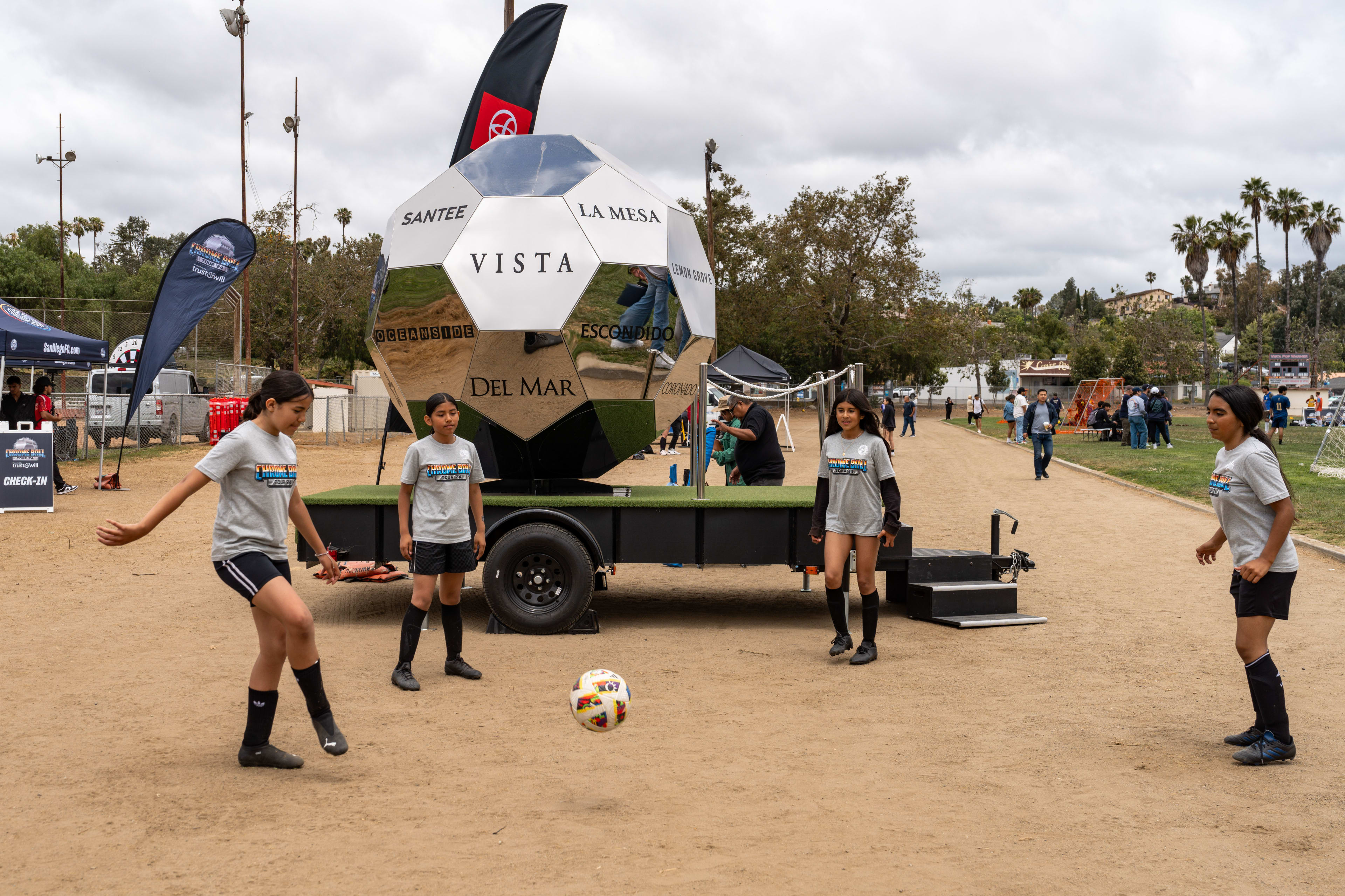 San Diego FC's Chrome Ball Tour made its way to Vista on Saturday, May 25th, at Vista Magnet Middle School. This event was a celebration that featured 6v6 soccer tournaments with cash and merch prizes, the SDFC merch truck, soccer darts and other games, & more!